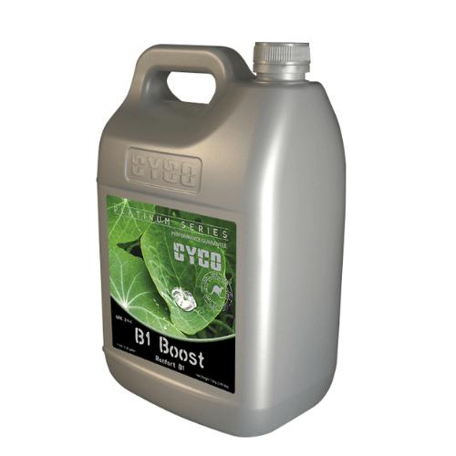 Cyco Platinum Series B1 Boost is an additive used throughout the vegetative and flowering periods of plant growth. Used at higher concentrations in vegetative growth than flowering, B1 Boost contains high amounts of the natural vitamin B1, also known as thiamine. Thiamine is a natural hormone that is present in the plant, natural bacteria excrements and native fungi. By providing a constant presence of thiamine, root growth is encouraged, thereby allowing for healthy new growth. B1 Boost is also a strong source of pharmaceutical-grade potassium. A necessary ingredient to plant growth enzymes, protein formation and the translocation of sugars, potassium in B1 Boost allows for vibrant, healthy growth.
