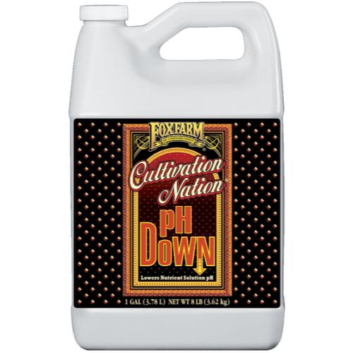 Cultivation Nation® pH DOWN lowers the pH of nutrient solutions. An ideal pH range for growing plants is 5.6 – 6.8. Shake well before use.