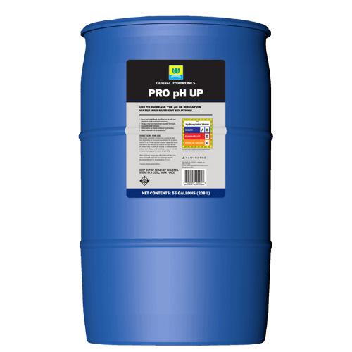 General Hydroponics Pro pH adjusters are based on completely different technology than our traditional smaller sized adjusters offering. New non-mineral based acids and bases will not add nutrient value like the use of phosphoric acid or potassium hydroxide. They are safer to use as well as compared to mineral based adjusters. This is due to having a zero rating score for all safety categories on the HMIS scale as well as being non-corrosive and non-caustic. This means there are no HazMat fees to ship these products like other pH adjusters. Use Pro pH UP or Pro pH DOWN to effectively adjust the pH of nutrient solutions or irrigation water. GH Pro pH adjusters are highly concentrated and available in commercial sizes.