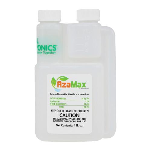 AzaMax™ is a natural product with a broad spectrum of pest control. It contains Azadirachtin A & B as active ingredients and more than 100 limonoids. AzaMax™ does not use hard chemical solvents. It is an antifeedant and insect growth regulator that controls pests through starvation and growth disruption. Effectively controls spider mites, thrips, fungus gnats, aphids, whiteflies, leaf miners, worms, beetles, leafhoppers, scales, mealy bugs, nematodes and other soil-borne pests. Mix a tablespoon per gallon.