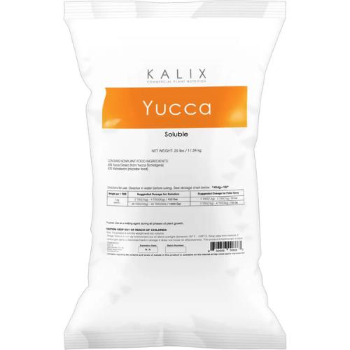 Use KALIX Yucca as a wetting agent or surfactant in foliar sprays and nutrient solutions. When used in soil, yucca helps water penetrate deeper and more evenly into the root zone, eliminating dry pockets and aiding in nutrient absorption and uptake. The water spreading capability of KALIX Yucca also makes it great for flushing excess salts from the root zone. KALIX Yucca is suitable for use in conjunction with all nutrient and feeding programs.