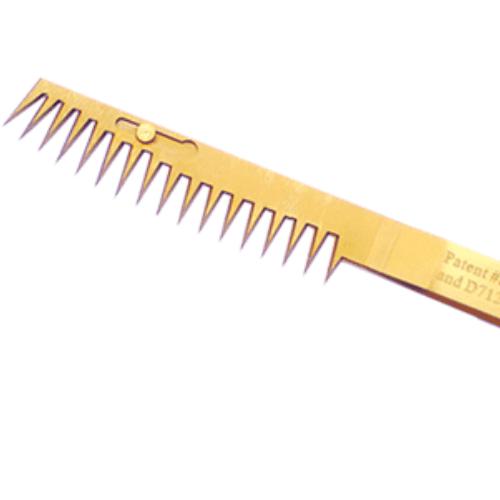 The Sabertooth blade features long, thin wide spaced teeth and a forward angled tip. The angled teeth at the tip are what allow for spot-on trimming permitting the plant to be manicured in a manner very similar to scissors in that it only removes the intended material while leaving the surrounding flower untouched.
