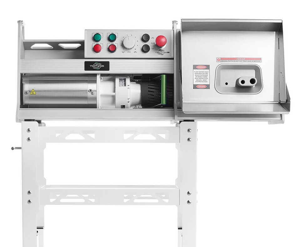 The Twister B4 ‘Bucker’ is a flexible design that can be installed/operated on a stainless bench, table, or the accessory stand. It can even be run off a tailgate! Made to work with any size grow or operation that relies on high-quality products that get the job done day-in day-out, without risk of downtime or machine failure. Manufactured specifically for growing operations by the brand you trust and know.